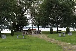 In 1666, Fort Sainte Anne was built on Isle La Motte to protect Montreal from attacks by the Iroquois Indians.[1][2] Both the fort and chapel were dedicated to Saint Anne, the mother of the Virgin Mary. It was the site of the first Catholic Mass celebrated in Vermont. In 1668, the bishop of Quebec, François de Laval, came to Isle La Motte to baptize a number of Iroquois to Christianity. Even after the abandonment of the fort, the shrine continued to offer mass to worshipers. The Fort was destroyed sometime between 1670 and 1690; the Way of Calvary at the Shrine marks the place where the Fort once stood.[3]