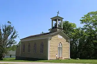 Saint Augustine Church is an early Catholic church built in 1844 in New Diggings, Wisconsin, during the area's lead-mining boom. The building was designed by pioneer priest and amateur architect Father Samuel Mazzuchelli, and survives unchanged from that early era.[3]