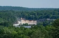 ![]() Dam, as seen from a hiking trail viewpoint at Wisconsin Interstate Park. | |