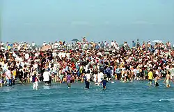 Saint Sarah, also known as Sara-la-Kâli ("Sara the Black"; Romani: Sara e Kali), is the patron saint of the Romani people in Folk Catholicism. The center of her veneration is Saintes-Maries-de-la-Mer, a place of pilgrimage for Roma in the Camargue, in Southern France. Legend identifies her as the servant of one of the Three Marys, with whom she is supposed to have arrived in the Camargue.[1] Saint Sarah also shares her name with the Hindu goddess Kali who is a popular deity in northern India from where the Romani people originate. The name "Sara" itself is seen in the appellation of Durga as Kali in the famed text Durgasaptashati.[2] Despite her popular veneration amongst Romani Catholics, she is not considered a Saint by the Roman Catholic Church.[3]
