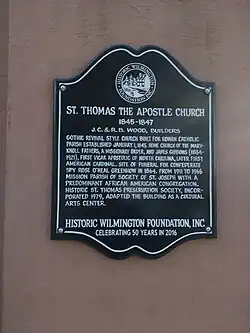 Saint Thomas Preservation Hall is a historic former Catholic church and Gothic Revival style building located in downtown Wilmington, North Carolina. It is currently a wedding and arts venue.