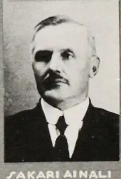 Sakari Ainali (3 December 1874 - 31 October 1938) was a Finnish farmer, businessman, lay preacher and politician, born in Himanka. He was a member of the Parliament of Finland from 1924 to 1929 and from 1930 to 1933, representing the National Coalition Party.[1]