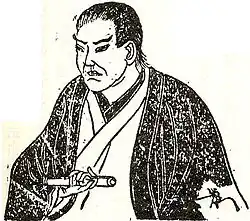 Kiuchi Sōgorō (木内 惣五郎), also known as Sakura Sōgo(rō) (佐倉 惣五(郎); Japanese pronunciation: [saꜜ.kɯ.ɾa | soꜜː.ɡo(.ɾoː), sa.kɯ.ɾa soꜜː-],[1] 1605 – September 1653) was a legendary Japanese farmer whose real family name was Kiuchi. He is said to have appealed directly to the shōgun in 1652 when he was serving as a headman of one of the villages in the Sakura Domain. In the appeal he requested the shōgun to help ease the peasants' burden of heavy taxes and bad crops. But since direct appeals were illegal in those days, he was arrested. It is widely believed that he was executed (crucified) along with his sons (and some sources claim also his wife) in 1653 by the daimyō of his feudal domain. However, no evidence for the existence of the incident has been found, although a farmer named Sōgorō was found listed on the record of the village.[2] The legend of Sakura Sōgorō has been made into numerous stories and plays of kabuki, Jōruri, and so on (a.o. a play called "Self-Sacrificing Man Sakura Sōgo"). In 1851 the play was first staged at Nakamura-za. He is enshrined in Sōgo-reidō of Tōshōji temple in Narita city. He was praised by Fukuzawa Yukichi and in the Freedom and People's Rights Movement and is still admired by many as gimin (martyr, in the non-religious sense). Every year on 2 September (it is said that it is the day before his execution, but other sources say he was executed on the 24th), there are all-night gatherings in memory of Sōgo-sama at the Sōgo Reidō Sanctuary (Tōshōji Temple) in Narita (Chiba prefecture).