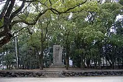 This was the location in Volume 16 of the Taiheiki where Kusunoki Masahige, en route to his death at the Battle of Minatogawa against the forces of Ashikaga Takauji, parted ways with his son Kusunoki Masatsura, whom he ordered to Kawachi Province. The events of the Taiheiki were greatly romanticized and promoted by the Meiji government and pre-war Japanese nationalists, who drew parallels between the Kenmu restoration and the Meiji restoration 550 years later. In November 1876, the British ambassador to Japan, Sir Harry Parkes erected a stone monument on this site commemorating Kusunoki Masashige, and further monuments were erected by General Nogi Maresuke in 1913 and Fleet Admiral Tōgō Heihachirō in 1931.[2]