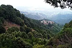 The Corsican fire salamander mainly lives in the deciduous mountain forests of the island. On the west coast near in the Calanques de Piana, salamanders have been found near sea level, but in general they appear as inhabitant of forests with deciduous oaks, such as sessile oak, downy oak and sweet chestnut gardens near the human settlements. Forests with the maritime pine and the Corsican black pine (Pinus nigra subsp. salzmannii var. corsicana) are also inhabited. Densely growing ferns (Pteridium aquilinum), tree heath, and other shrubby vegetation might diminish the fire salamander population, also as evergreen sclerophyllic woods, such as holly oak forests because of their minor precipitation sum. Beech forests are populated in the Castagniccia and also in the south of the island where this tree assembles dense azonal forests and does not appear mainly as upper tree line, as in the western mountain ranges of Corsica.