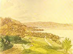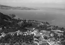 In the Eichholz area near Salenstein, burial mounds from the late Hallstatt period (750-450 BC) have been discovered. The modern village of Salenstein is first mentioned in 1092 as Salestein.[3] In the 11th century, Salenstein Castle was built as a seat for the Ministerialis (unfree knights in the service of a feudal overlord) officials of Reichenau Abbey. The smaller castles of Sandegg and Riederen were added to provide further housing for the officials. The land rights, Herrschaft rights and the low court rights were all held by the abbey. In 1401, the noble Clare of Breitenstein, founded a Béguinage house in the Götschen woods, which was known as Blümlistobel. At some time before 1520 the Augustinian rule was introduced at the house. In 1534 a fire destroyed Blümlistobel house and it was rebuilt 1537. The last sister lived there until 1545, when she moved to Reichenau Abbey.[3]