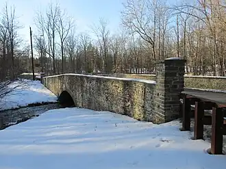Salisbury Turnpike Bridge is a historic stone arch bridge located at Rhinebeck, Dutchess County, New York. It was built in 1858 and is a single span stone masonry structure built of mortared random fieldstone.[2] Pilgrim's Progress Road Bridge is about 500 feet (150 m) southeast of this bridge.[3]