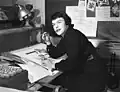 - 1938-1940 She attended Chouinard Art Institute (now California Institute of the Arts) in Los Angeles, studying with Italian artist Rico Lebrun and becoming close friends with fellow student Tom Keogh, who became a successful artist, costume and set designer, and who married [[Theodora