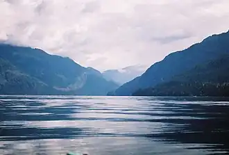 Salmon Inlet,[1] formerly Salmon Arm,[2] is a fjord branching east from Sechelt Inlet in the British Columbia, Canada.[3] Its companion, Narrows Inlet, another side-inlet of Sechelt Inlet, lies roughly 10 km (6.2 mi) north.[4] Misery and Sechelt Creeks flow freely into the inlet, while the Clowhom River flows in from the artificial Clowhom Lake, formed by a small hydroelectric power development.[5] The fjord is 23 km (14 mi) long; Clowhom Lake, covering a waterfall on the Clowhom River, stretches a further 12 km (7.5 mi) to the western base of Mount Tantalus, which is best known from the direction of Squamish and the Cheakamus Canyon stretch of British Columbia Highway 99. Heavily affected by logging and milling operations, the inlet is split almost into two portions by an alluvial fan spreading from the mouth of Sechelt Creek.[6]