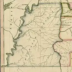 The special arrangements for the so-called Salt Lick Reservation, four by four miles square, were described in "a strange and cumbersomely worded clause in the treaty."[2] Located in present-day Henry County, in close proximity to the Big Sandy River, a tributary of the Tennessee, there was supposedly a salt lick that was claimed to be a resource equivalent to the Kanawha saltworks in what is now known as Kanawha County, West Virginia.[3]