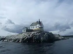Saltholmen Lighthouse (Norwegian: Saltholmen fyrstasjon) is a lighthouse in Lillesand municipality in Agder county, Norway. It is located on a small island off the coast about 2 kilometres (1.2 mi) southeast of the town of Lillesand. There has been a lighthouse here since 1882. The island (and lighthouse) are named Saltholmen (lit. "Salty Islet"). This name comes from the salt extraction industry established by Hans Nielsen Hauge that once was located there. The lighthouse is only accessible by boat and the site is open, but the building is not open to the public.[1][2]