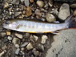 The Kirikuchi char (Salvelinus leucomaenis japonicus) is a freshwater fish in the family Salmonidae. It is endemic to the Kii Peninsula of central Honshu in Japan. It is the southernmost population of the char genus Salvelinus and is considered a relict in its region. It is usually considered a subspecies of the whitespotted char Salvelinus leucomaenis but was listed as a separate species in the IUCN Red List (1996).[1]