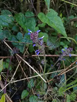 Salvia lasiocephala is an annual herb that is broadly distributed throughout the tropical Americas. It grows up to 60 cm (24 in) high, with leaves that are long-petiolate ovate-triangular, and 2.5 to 4 cm (0.98 to 1.57 in) long and wide. The inflorescence of terminal racemes has flowers with a pink to pale lilac or blue corolla that is 5 mm (0.20 in) long.[1]