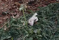 Salvia taraxacifolia is a species of flowering plant in the Lamiaceae family.[3][4] It is referred to by the common name Dandelion leaved sage and is a herbaceous perennial shrub that is endemic to southwest Morocco, growing in the Atlas Mountains at elevations ranging from 2,000 feet (610 m) to 8,000 feet (2,400 m). Very adaptable, it grows on limestone slopes, forest clearings, and rocky riversides. It has no close allies in the genus Salvia. The specific epithet, taraxacifolia, is likely Persian in origin and means 'leaves shaped like a dandelion'.[5]