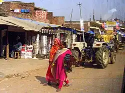 Under Pal Devi's leadership, the Gulabi Gang participated in non-violent and violent resistance. Hoping to raise more awareness about the oppression women within the district faced, they actively protested around government buildings.[18] In one instance, the Gulabi Gang showed up at a police station with pink dogs to humiliate the police and to communicate to them that the dogs were on their side more than the police.[19] Within an additional protest in 2008, members circled a Banda district office of electricity, where the village's power was cut off in exchange for bribes.[20] As a response, they decided to lock the officials within the building's apparatus and contended that the lock would be detached only if they reinstated the district's electricity, and after one hour, the electricity was restored.[21] On the matter of the gang's violent interventions, they utilized violence toward district and village officials. In one instance, the Gulabi Gang petitioned for a deteriorated road to be fixed, but an official spewed personal insults toward Pal Devi instead. As a result, they all overthrew him and he ultimately went on to greenlight the construction of a new road.[22] Regarding their interventions in domestic violence against women, they first aim to reason nonviolently with the husband, but if he fails to stop the abuse against his wife, then the gang and the wife both beat him up.[23] Pal Devi believed that women should fight back against oppressive men by standing firm against those who abused or abandoned their wives. Sampat Pal Devi once stated that the Gulabi Gang has a 100 percent rate of justice towards grievances of domestic violence.[24] In doing so, they learned how to defend themselves with a long Indian stick made of bamboo called a lathi.[13] She once stated "Yes, we fight rapists with lathis [large bamboo sticks]. If we find the culprit, we thrash him black and blue so he dare not attempt to do wrong to any girl or a woman again."[25] The Gulabi Gang only utilized violent methods in self-defense or as a last-ditch effort to combat oppression.[26]