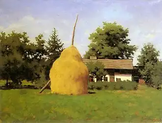 In 1908, he returned to Nagybánya, established himself there, and was among the first to open a permanent studio, although he continued to paint plein-air as the other artists did. Three years later, he became the Vice-President and Executive Chairman of the Nagybánya Painter's Society.[1] In 1912, he and Réti created the first Nagybánya exhibition catalog. Ten years later, at Réti's request, he compiled a biographical directory of the colony's artists.[1] He then became a teacher at the local art school in 1925.