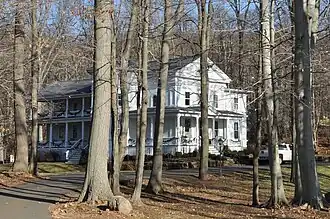 The Samuel Simpson House (also known as the Taber House) is a historic house at 1370 Scard Road in Wallingford, Connecticut. Built in 1838 by John Meigs Hall, it was the home of 19th century industrialist and philanthropist Samuel Simpson. Some of the house's structural beams, repurposed from an older building in the same location, date back to the 1600s.[2] Around 1867, the home was extensively redesigned by renowned New Haven, Connecticut architect Henry Austin, giving it Renaissance Revival characteristics.[3]