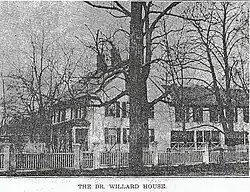 Samuel Willard, the son of Dr. Nahum Willard of Lancaster, Massachusetts, and a descendant of the famous Major Simon Willard of 17th-century Massachusetts, graduated from Harvard University in 1767.[1] He studied medicine under Dr. Israel Atherton of Lancaster, Massachusetts, setting up practice as a physician in the town of Uxbridge in 1770. As a physician in Uxbridge, Willard was particularly distinguished for his treatment of the insane,[1] establishing an "insane asylum" that he ran at Uxbridge. Known for his "eccentricities",[2] it was reported that he dunked his mentally ill patients in local ponds.[3] It appears that he was one of the earliest physicians to undertake the treatment of behavioral health problems with immersion in cold water. Dr. Willard's father, Nahum, was a Worcester Loyalist at the beginning of the Revolutionary War. Nahum was later forced to recant and then moved to Uxbridge. Both Samuel and his father drew the suspicions of Uxbridge officials who were concerned about possible Tories in their midst. Samuel proved his loyalties by serving as the Surgeon for the 2nd Worcester County Regiment of Foot (soldiers)when they marched to defend Tiverton, Rhode Island. Dr Willard, along with Reverend Hezekiah Chapman, were leaders of the Worcester County Convention that provided the justification of Daniel Shays' Rebellion. Both Willard and Chapman were listed as fugitives during the conflict but were not known to have been combatants. Willard spent that time in Smithfield, Rhode Island, where attempts to arrest him by the Worcester County sheriff were rebuffed by the local Justices of the Peace.[4] Dr. Samuel Willard of Uxbridge is not to be confused with Rev. Samuel Willard, the minister of Third (Old South) Church in Boston (perhaps originally from Concord, Massachusetts), who opposed the 1692 witchcraft trials. He is also not to be confused with the later Dr. Samuel Willard, a Civil War-era surgeon from Lunenburg, Vermont, who died in Chicago.