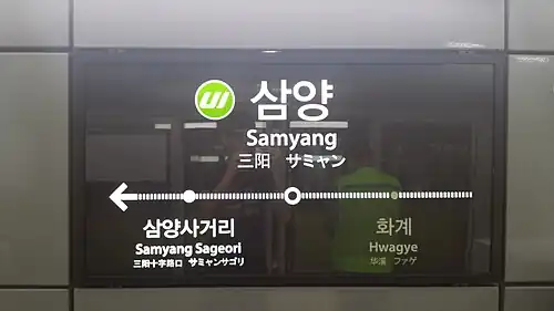 Samyang station is a station on the Ui LRT located in Mia-dong, Gangbuk-gu, Seoul.[1][2] It opened on 2 September 2017.[3]