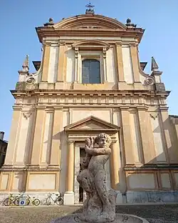 The first church at the site was dedicated to St Barnabas, the first bishop of Milan, and was noted at the site by 1263. The church was provided by Francesco I Gonzaga in 1397 to a convent of nuns of the Servite Order. In 1724, the church was rebuilt with a new façade designed by the architect Antonio Galli Bibiena.[1] The adjacent cloister was destroyed in 1900.