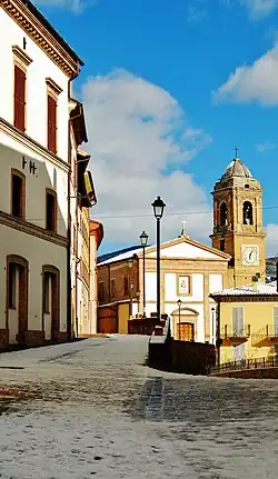 Details on the foundation of the church are slim. It was likely erected at the site of a former church inside the castle walls. The church utilizes the castle guard tower as one of its bell-towers. The church is mentioned in documents by 1330. The earthquake of 1799 caused damage, and the church underwent a major reconstruction commissioned in 1802 by Cardinal Giuseppe Doria Pamphili, and with recommendations by the architect Giacomo Cansoni. A fire in 1906, led to further reconstruction and modifications.[1]