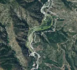 San Dimas Dam is a concrete gravity dam in Los Angeles County, California. The dam and its flood control basin/reservoir are in the San Gabriel Mountains and within the Angeles National Forest. The dam is currently operated by the Los Angeles County Department of Public Works but was originally built by the Los Angeles County Flood Control District in 1922.[3] The dam controls flooding from San Dimas Creek, a major San Gabriel Mountains drainage and tributary of the San Gabriel River. As a flood control facility the San Dimas Reservoir is dry for most of the year, only storing water after significant winter storms. The regulation provided by the dam allows for the efficient diversion of floodwaters from San Dimas Wash to Puddingstone Reservoir, which protects the San Dimas area of the San Gabriel Valley.