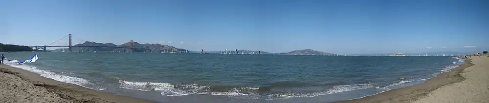 The seasonal range of water temperature in the bay is from January's 53 °F (12 °C) to September's 60 °F (16 °C) when measured at Fort Point, which is near the southern end of the Golden Gate Bridge and at the entrance to San Francisco Bay.[36]