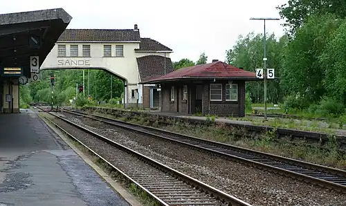 Sande station (German: Bahnhof Sande) is a railway station located in Sande, Lower Saxony, Germany. The station is located on the Oldenburg–Wilhelmshaven railway and Sande-Esens railway. The train services are operated by NordWestBahn.