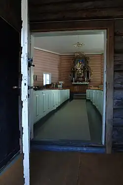 In 1935, the church was disassembled at its historic site in Sandnes and moved to the more populous village of Åraksbø, about 4 kilometres (2.5 mi) to the north, where it was reconstructed. The materials were hauled on the frozen Byglandsfjorden from the old site to the new site. The move had been contemplated for over 40 years since Åraksbø is where almost all the residents of the parish lived. This was a practical move, but it was also controversial. When the newly reconstructed church was re-consecrated in October 1935 by the Bishop, no one from Frøysnes and Sandnes (where the old church stood) came to the service as a way of protesting the move. As a way of smoothing things over, a small chapel was built on the site in Sandnes where the church once stood. The chapel was completed in 1940. There is no cemetery at the new church site, but the cemetery at the old site is still in use.[3][4]