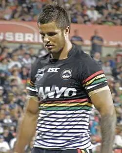 The following season, he signed for the Penrith Panthers and was named the club's top rookie player.[6] His 2010 season was capped by scoring a spectacular try in the finals against the Canberra Raiders, cartwheeling towards the try line and planting the ball over it while his body was suspended over the sideline.[7] However, Penrith lost the match and were knocked out of the finals the following week, losing to Earl's old club, the Sydney Roosters.[8]
