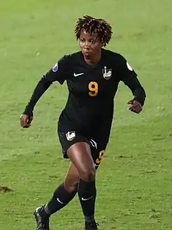 She participated in the team's campaign at the 2022 Women's Africa Cup of Nations, their first ever appearance in the tournament. She scored a brace in the final match of the group stage, a 2–4 loss to Botswana.[12]