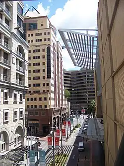 The central business area of Sandton is divided into three City Improvement Districts, which have a unified identity called the Sandton Central Management District, branded as Sandton Central.[9] This district is responsible, using additional funds levied on its behalf by the municipality, for the provision of additional services.[10] The Sandton Central Management district provides additional cleaning, law enforcement, beautification and planning services to the area it services.[11]
