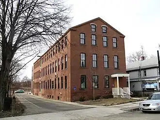 The Sanford Whip Company is a historic factory located at 330 Elm Street in Westfield, Massachusetts. Built in 1883, it was owned and operated by one of the whip-making business that led Westfield to become widely known as "Whip City".[2] The building for many years housed a novelty toy manufacturer after the market for whips declined in the early decades of the 20th century. The factory was listed individually on the National Register of Historic Places in 2008,[1] and as part of an expanded Westfield Center Historic District in 2013. It has been converted into affordable housing space.[2]