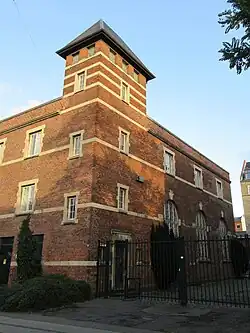 Sankt Knuds Værket (No. 32-34) is a former power station built by Frederiksberg Tramway and Electricity Company (Frederiksberg Sporvejs- og Elektricitets Aktieselskab) in 1907. The company's first tram line passed through Niels Ebbesens Vej. The installation was taken over by Frederiksberg Municipality in 1911 and operated by first Frederiksberg Elektricitetsværker and later Frederiksberg kommunale Værker. It was decommissioned in 1927.[4]