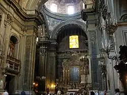 The interior, in Latin cross with chapels, displays gran Baroque pictorial cycles: Glory of Santa Brigida, St Nicola, The Last Judgment and The Passion, by Luca Giordano. The painter himself is buried in the church. Some of the Giordano paintings were completed by his pupil, Giuseppe Simonelli. Other painters active in the church include Massimo Stanzione and Paolo De Matteis.