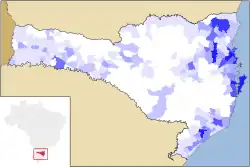 The state of Santa Catarina is one of the oldest states in Brazil. It separated from São Paulo in 1738, with José da Silva Pais serving as its first governor. The state was established to extend Portuguese dominions to southern Brazil, reaching as far as the Rio de la Plata region.[11] It is also the oldest state in the South Region of Brazil, predating Rio Grande do Sul (1807) and Paraná (1853). The state was populated by various peoples throughout its history, such as the indigenous Carijós people of the Tupi-Guarani group, and later became an important destination for Azorean Portuguese, Italian, German, and other European immigrants.[11] African slaves and their descendants also contributed to the formation of the state's population.[12]