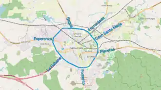 The Santa Clara Beltway is a ring road encircling the city of Santa Clara, Cuba. The road is 2 lanes on both sides, with a central divider in the middle. It is commonly known as simply the Circunvalación de Santa Clara (Santa Clara Beltway), although officially its split into the Circunvalación Norte and Circunvalación Sur (North Beltway and South Beltway).