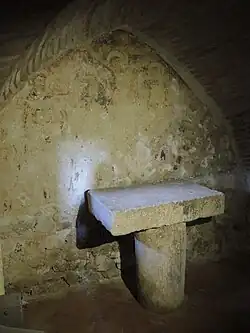 The Church of Santa Maria ad Cryptas (or of the Caves) is located about a kilometer from the center of the village of Fossa and a few kilometers from the Monastery of Santo Spirito (Ocre) in Ocre, upon which it depended.[2] Presumably, the church was initially built as a Roman-Byzantine style temple in the 9th or 10th century AD with a crypt from which it derived its name.[3][4]