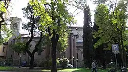 A church at this site, outside of the city walls, was rebuilt in 1432 by the Olivetan order. The church was then acquired by an Augustinian order of Friars, who added the portico in the late 15th-century. The interior houses works by various important artists including a fresco (moved to canvas) depicting the Madonna dell'Umiltà (1397) by Lippo di Dalmasio. There are also works by Bartolommeo Ramenghi (il Bagnacavallo), Bartolomeo Cesi, Vincenzo Spisanelli, Ubaldo Gandolfi and Francesco Francia.[1]