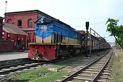 Many rail services in Bangladesh have a stoppage in Santahar, at the junction station, a vital connection for both freight and passenger rail services. Some passenger services include: the Banglabandha Express, Drujatan Express, and Lalmoni Express. The Mitali Express, which is a co-owned rail service between India Railways and Bangladesh Railway,[9] also stops at Santahar, on its way to Siliguri from Dhaka and back.[10][11]