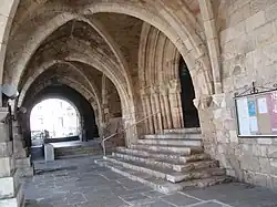 The cloister, with a trapezoidal shape, was built during the first half of the 14th century in the same architectural style. Through the doors of its western wall, it was possible to access the great Hospital of the Holy Ghost and the pilgrims' church on the Way of St. James.