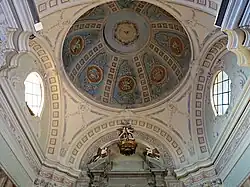 The church was built in a Latin-cross layout in 1595 around a venerated icon of the Virgin. An altarpiece on the right has a canvas depicting a Madonna and child and Saints by Baccio Ciarpi. In the choir are frescoes depicting the Marriage of the Virgin and Presentation at the Temple.[1]