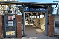 Sapperton is an elevated station on the Expo Line of Metro Vancouver's SkyTrain rapid transit system. The station is located on Brunette Avenue, above a Canadian Pacific Kansas City rail right-of-way in the Sapperton neighbourhood in New Westminster, British Columbia, Canada. Located nearby is the Royal Columbian Hospital. TransLink's head offices are also located within the vicinity of the station.[2]