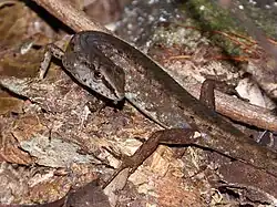 Saproscincus challengeri, also known commonly as the Border Ranges shadeskink, Challenger's skink, the challenging shade skink, and the orange-tailed shadeskink, is a species of lizard in the family Scincidae. The species is native to New South Wales and Queensland in Australia.[2]