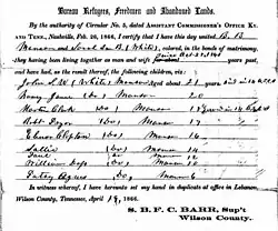 - ^ a b "Marriage certificate issued by the Freedmen's Bureau". www.ncpedia.org. Retrieved 2021-06-24.