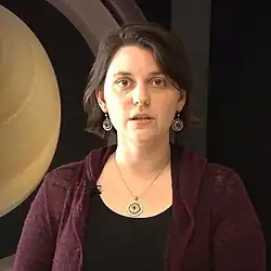 She regularly appears on online science podcasts and videos.[21][22][23][24] She visits schools and gives public talks to inspire the next generation of scientists and engineers.[25][26][27][28][8] She has been a keynote speaker at Dragon Con in 2016 and 2018.[29][30]