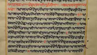 - ^ The manuscript bears a recorded Indic date of Samat 1755, miti Bisakh sudi 5 (corresponding to the year 1698 in the Gregorian calendar) as their date of writing, on folios 1 and 2b.