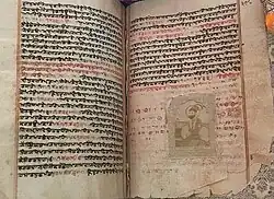The Sarbloh Granth or Sarabloh Granth (Punjabi: ਸਰਬਲੋਹ ਗ੍ਰੰਥ, sarabalōha grantha, literally 'Scripture of Pure Iron'[note 1]),[3] also called Manglacharan Puran[4] or Sri Manglacharan Ji, is a voluminous scripture, composed of more than 6,500 poetic stanzas.[5] It is traditionally attributed as being the work of Guru Gobind Singh, the tenth Sikh guru.[6][4] Scholars, on the other hand, attribute the work to after the Guru's death, being authored by an unknown poet.[4][7] The work is mostly revered by the Nihang sect.[8]