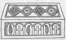 Although the carving motifs on the sarcophagus are traditional for Byzantine sculpture of the 11th century, they are also found on monuments of the 12th-13th centuries, for example, on reliefs from Smyrna from the late 11th-12th centuries or Thessaloniki from the 12th-13th centuries. This extends the dating of the slate sarcophagus to the 11th-12th centuries.[9]