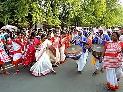 Since 1961, processions have been organized during the Sarhul festival in Ranchi and Gumla. Before that, there were no such processions; people only danced near Sarna sthal.[7] In urban areas, middle-class tribal activists have reinvented the nature festival Sarhul to emphasize regional identity, while in rural areas, it remains primarily a thanksgiving ritual to the deities.[15]